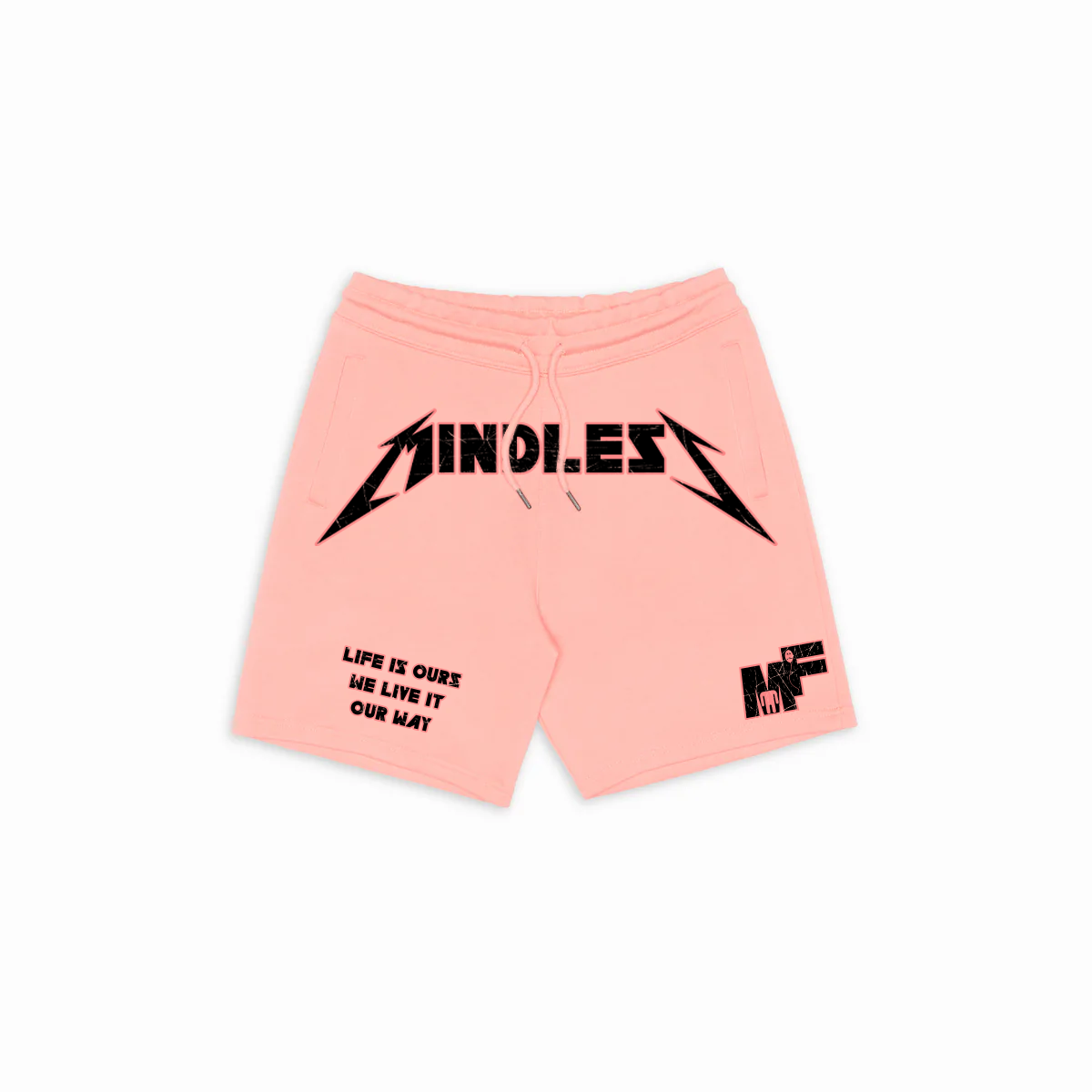 In homage to Metallica's 1991 hit song "Nothing Else Matters", brought to you by Mindless Figure. Featured on premium organic cotton shorts in a salmon pink color.